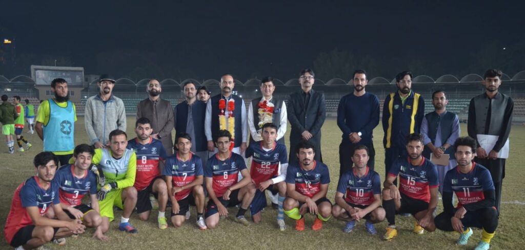 پشاور سپورٹس کمپلیکس میں فلڈ لائٹ فٹبال میچ کا شاندار انعقاد