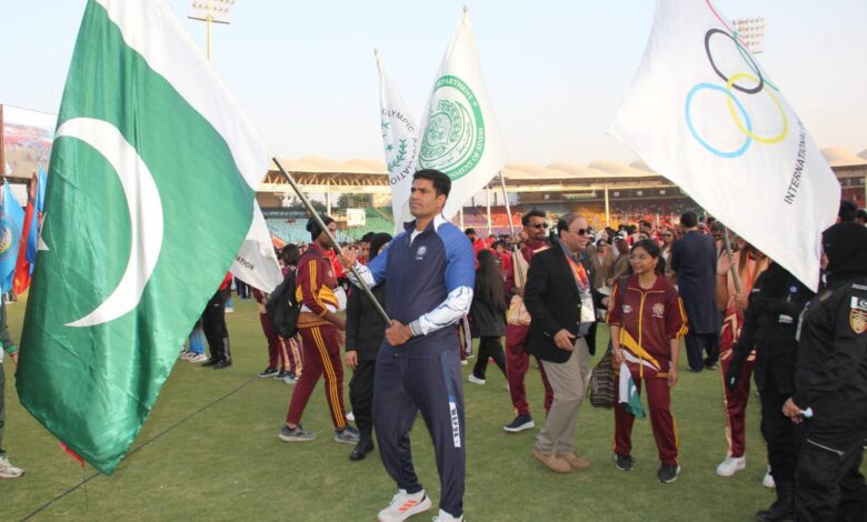 اس سے قبل ارشد ندیم نے جیولین تھرو پھینک کر نیشنل گیمز کا آغاز کیا، وہ پاکستان کا جھنڈا لہراتے ہوئے میدان میں داخل ہوئے۔