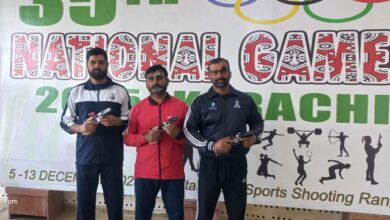 آرمی کی لیفٹیننٹ مصباح نے شوٹنگ میں خواتین ایونٹ کے 50 میٹر رائفل میں سونے کا تمغہ اپنے نام کیا، مینز میں 10 میٹر ایئر پسٹل ٹیم ایونٹ میں نیوی کے شوٹرز نے نیا قومی ریکارڈ قائم کردیا۔