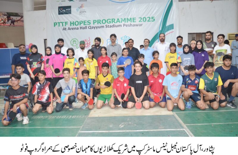 پاکستان ٹیبل ٹینس فیڈریشن کے زیراہتمام ہوپ پروگرام کے تحت آل پاکستان انڈر12 جونیئر ٹیبل ٹینس ٹریننگ کیمپ اور انڈر15 ماسٹر ٹیبل ٹینس کپ کے مقابلے پشاور سپورٹس کمپلیکس پشاورمیں شروع ہوگئے.