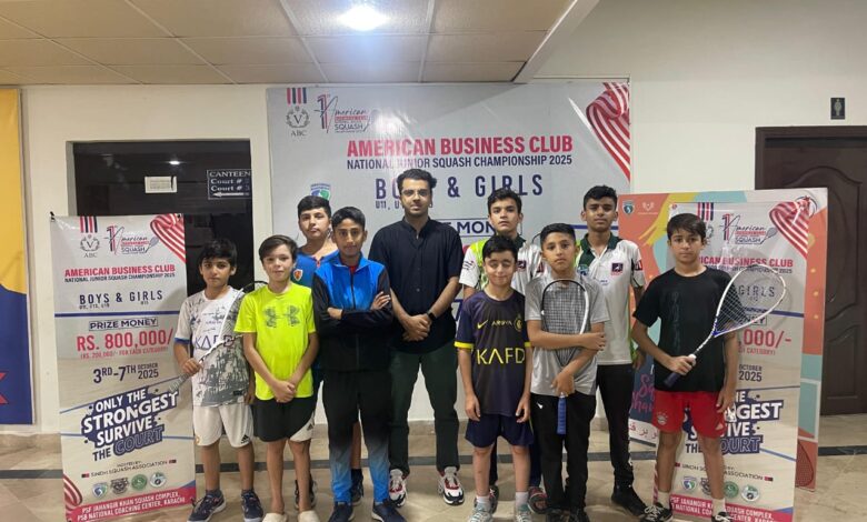 سندھ اسکوا ش ایسوسی ایشن کے زیر اہتمام پی ایس ایف جہانگیر خان اسکواش کمپلیکس پی ایس بی کراچی سینٹرکے اسکواش کورٹس میں جاری آٹھ لاکھ روپے مالیت کی انعامی رقم کی حامل پہلی امریکن بزنس کلب نیشنل جونیئر اسکواش چیمپئن شپ میں گزشتہ روز سیمی فائنلز کھیلے گئے۔