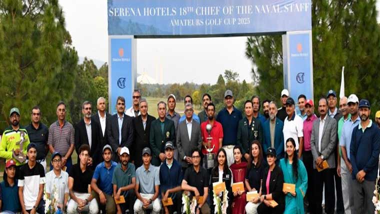 اسلام آباد، 26 اکتوبر 25: محمد یاسر کھوکھر نے 18ویں چیف آف دی نیول اسٹاف امیچور گالف کپ 2025 کا ٹائٹل جیت لیا۔ لیفٹیننٹ کرنل ریٹائرڈ محمد ایوب خان، جیسیا تصور اور ماسٹر مصعب آصف نے بالترتیب سینئر، لیڈیز اور جونیئر کیٹیگریز میں ٹائٹل جیتے۔