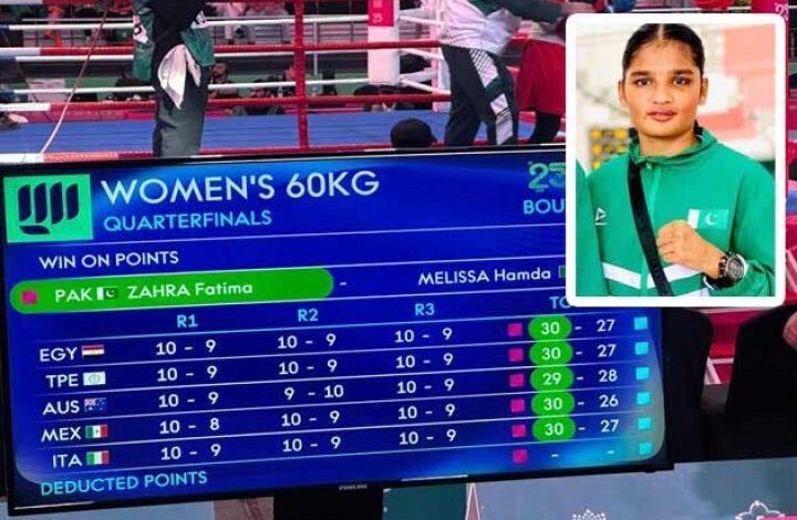 پاکستانی باکسر فاطمہ زہرا کی شاندار کامیابی، اسلامک گیمز میں پہلا میڈل یقینی بنالیا