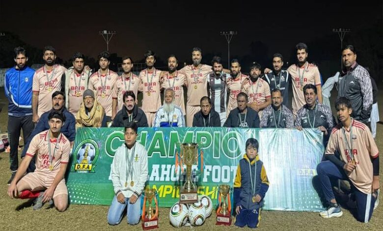 لاہور ڈسٹرکٹ فٹ بال چیمپئن شپ کے پلیئنگ رائٹس ٹیمز کے درمیان ایونٹ کا فائنل سنسنی خیز مقابلے کے بعد باٹا پور فٹ بال کلب نے اپنے نام کرلیا۔
