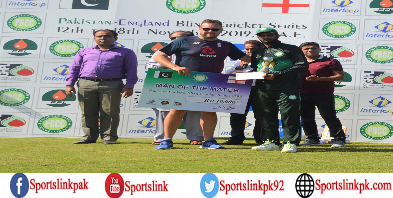 بدھ کو اوول کرکٹ گراؤنڈ عجمان میں کھیلی گئی سیریز کے دوسرے میچ میں پاکستان بلائنڈ کرکٹ ٹیم نے ٹاس جیت کر پہلے فیلڈنگ کا فیصلہ کیا۔ انگلینڈ کرکٹ ٹیم نے پہلے کھیلتے ہوئے مقررہ 20 اوورز میں9 وکٹ کے نقصان پر132رنز سکور کئے۔