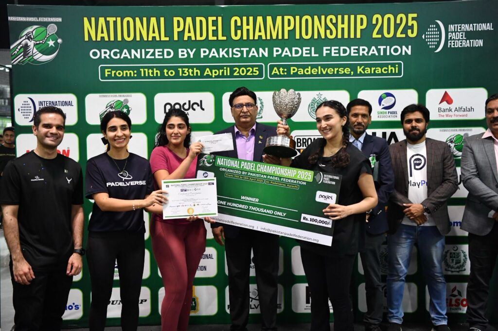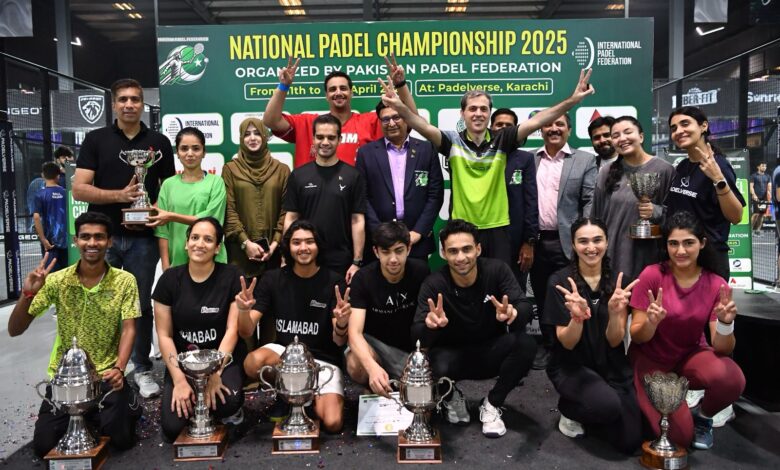 کراچی ; پاکستان پیڈل فیڈریشن کے زیر اہتمام نیشنل پیڈل چیمپیئن شپ 2025 پیڈل ورس، کراچی میں اختتام پذیر ہوگئی، جس میں کھلاڑیوں نے تین کیٹیگریز: مینز، ویمنز اور مکسڈ ڈبلز کے فائنلز میں ہائی اوکٹین ایکشن اور غیر معمولی صلاحیتوں کا مظاہرہ کیا۔